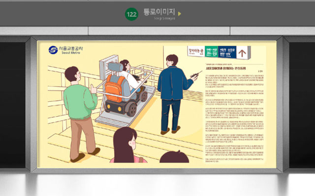 일러스트 삽화를 활용하여 지하철 이용객들의 시선을 집중시킬 수 있도록 하였습니다.