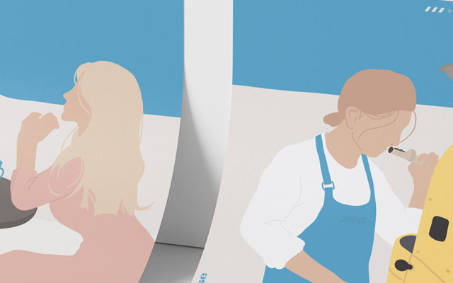 하이마트 가전 제품들로 코로나 시대를 극복하는 모습을 작업했다.