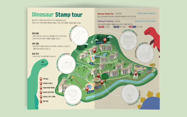 호텔 자체에서 운영하는 스탬프 투어용 리플렛으로 일러스트를 사용하여 전체적으로 귀엽게 제작했다.