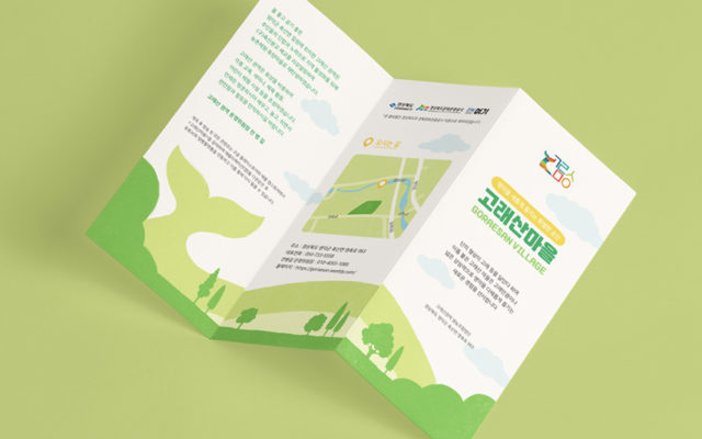 경상북도 관광지 홍보용으로 제작된 고래산 마을의 정보가 담긴 리플렛이다. 말 그대로 고래를 산으로 표현한 일러스트를 표지에 넣어 재미를 더했으며 전체적으로 나무와 산, 구름 일러스트로 따뜻한 느낌이 들도록 했다. 또한 각각의 프로그램들에 맞는 일러스트를 넣어 귀여운 느낌을 한 층 높였다.