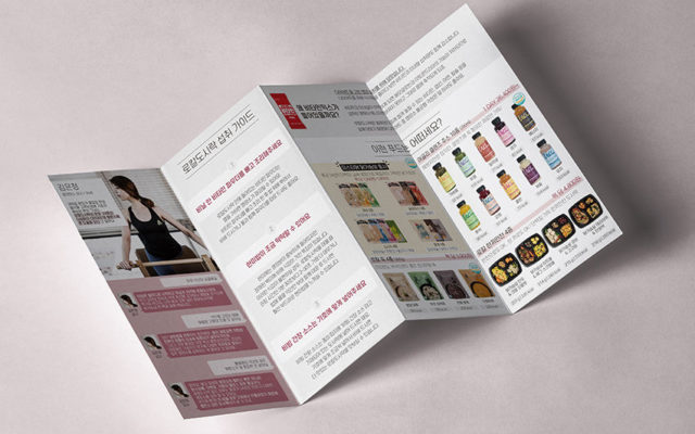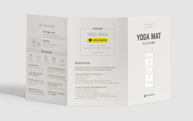 요가 매트에 대한 정보가 담겨있는 리플렛. 차분하고 깔끔하게 제작되었다.
