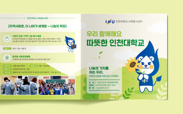 인천대학교 사회봉사센터 리플렛 디자인입니다.