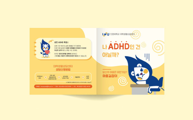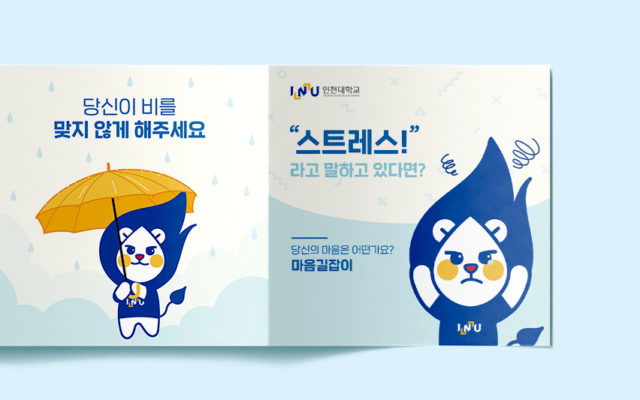 인천대학교 마스코트 캐릭터를 활용하여 귀엽고 따뜻하게 제작한 리플렛입니다.