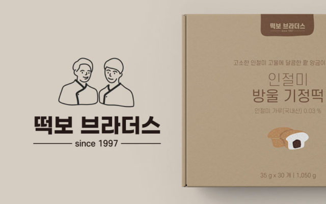 20년 된 기정떡 브랜드 떡보 브라더스. 기존 캘리형 로고에서 깔끔한 고딕 폰트 타입의 로고로 리디자인되었고, 그에 맞춰 올드 한 박스 디자인에서 트렌디한 박스 패키지로 제작되었다.