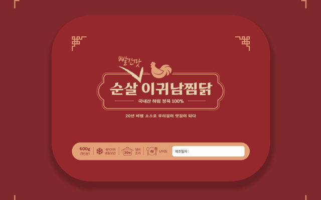 ‘이귀남찜닭’의 브랜드 정체성을 강조하며 전통과 현대적인 감각이 조화롭게 어우러진 디자인입니다.