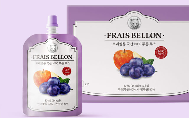 프레벨롱의 국산 NFC푸룬주스 패키지 디자인입니다.
