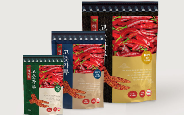 해가온의 고춧가루 3종 패키지 디자인입니다.