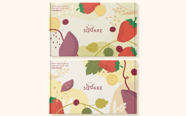 건강한 작물을 담은 디저트 세트 패키지이다. 원재료 일러스트들을 물 흐르듯 자연스럽게 배치함으로써 귀여우면서 친근한 느낌을 준다.