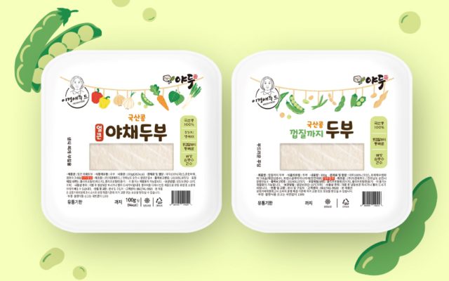 여러 종류의 콩과 야채들의 원물 일러스트를 넣은 디자인으로, 어린 아이도 거부감 없이 먹을 수 있게