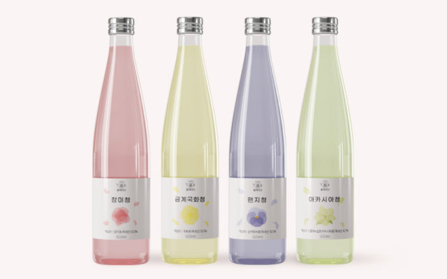 꽃 원물을 활용한 꽃청, 꽃차, 박스 패키지이다.