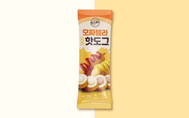 치즈가 흘러내리는 느낌의 일러스트와 노랑, 주황 컬러를 조합하여 전체적으로 핫도그가 연상 되도록 제작하였다.