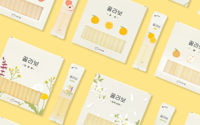 심플하게 원물 일러스트가 들어간 패키지로, 스틱과 박스, 쇼핑백 모두 일러스트와 컬러에 포인트를 주어 깔끔하게 제작하였다.