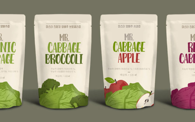 초창기 미스터 네이처의 시그니처 메뉴였던 양배추즙 라인과 각종 즙 패키지 디자인. ‘즙’이라는 자체에서 느껴지는 올드 한 느낌을 없애고 타사 제품들과 차별화를 위해 원물의 일러스트를 강조하여 제작되었다.
