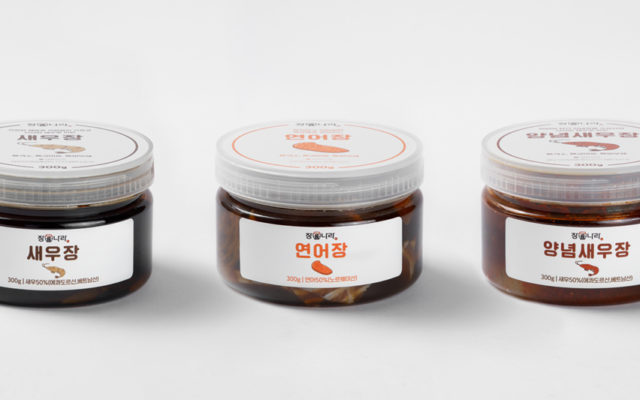 장 3종 패키지 디자인. 일러스트를 사용하여 깔끔한 화이트톤으로 제작되었다.