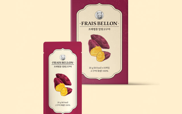 프레벨롱의 말랑고구마 간식 패키지 디자인입니다.