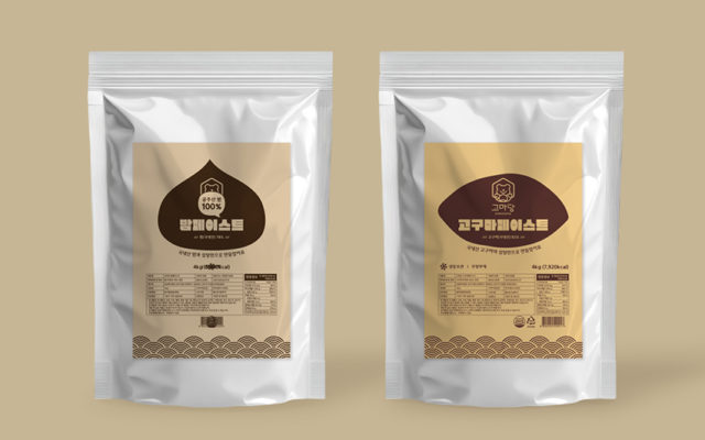 고구마, 밤 페이스트와 붕어빵 패키지 디자인입니다.