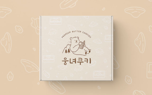 손그림 스타일의 마들렌과 버터 일러스트를 라인으로 넣어 로고와 자연스럽게 어울어지도록 제작했으며