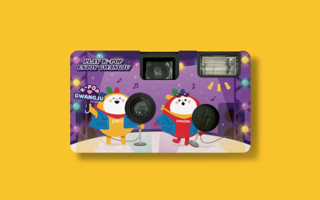 광주시의 캐릭터를 이용하여 콘서트를 하고 있는 모습을 담은 카메라 패키지다. 카메라 렌즈 구멍을 이용하여 캐릭터가 스탠딩 마이크를 들고 있는 모습으로 센스있고 재미있는 패키지를 제작하였다.