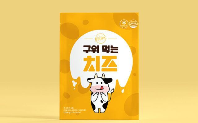 타이틀 폰트 및 일러스트가 포인트 되는 디자인으로 전체적으로 귀엽고 통통 튀도록 제작했으며 치즈가 녹는 모습, 소가 입맛을 다시는 모습으로 제품의 정체성을 나타내었다.