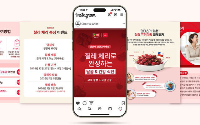 칠레 체리의 깊은 딥레드 컬러를 메인으로 활용해 제품의 신선함과 프리미엄 이미지를 강조하고,