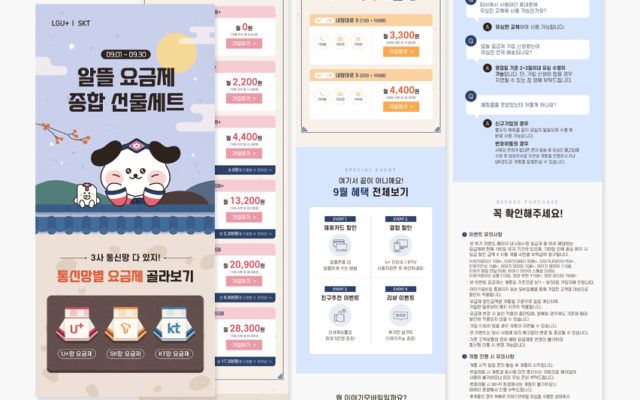 명절을 맞이한 이벤트 상세페이지로 브랜드 캐릭터를 활용하여 추석 느낌이 물씬 느껴지는 디자인이다. 백그라운드에 한지 느낌의 텍스처를 깔아 전통미가 더욱 돋보이며 깔끔한 레이아웃으로