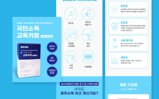 패키지와 어울리는 블루 계열 컬러를 사용하여 깨끗하고 신뢰감이 느껴진다. 폰트의 두께 강약 조절로