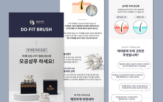샴푸 브러쉬 설명이 담긴 상세페이지로 기획, 활영, 디자인까지 프로젝트로 진행되었다.