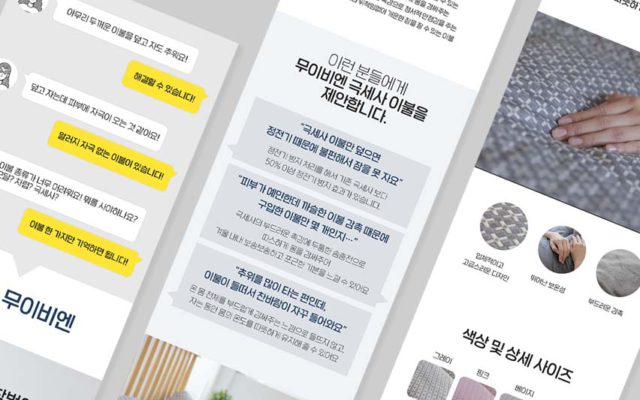 침구류 브랜드로 로고와 상세페이지를 제작하였다. 로고는 브랜드 이니셜 M이 직관적으로 나타나게 디자인하였고, 상세페이지는 다양한 GIF(움짤)과 아이콘을 활용하여 깔끔하고 보기 쉽게 제작하였다.