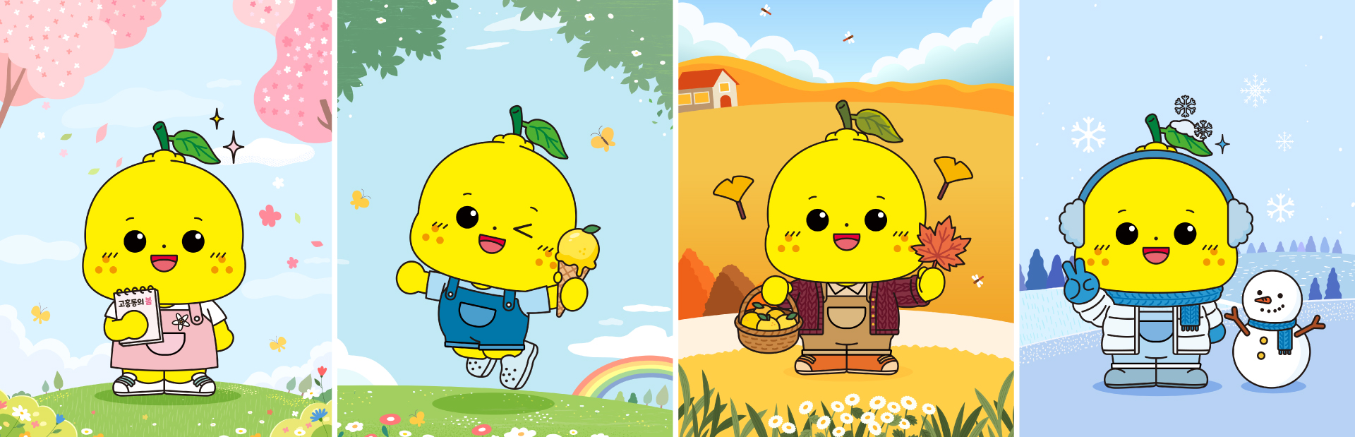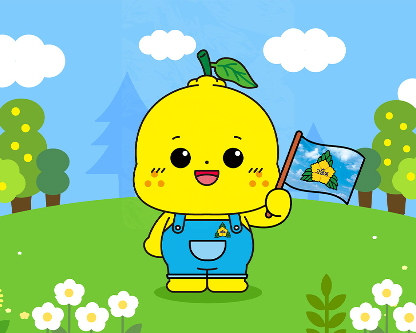 고고흥의 특산물인 유자를 모티브로 제작한 고흥초등학교 마스코트 캐릭터 디자인입니다.