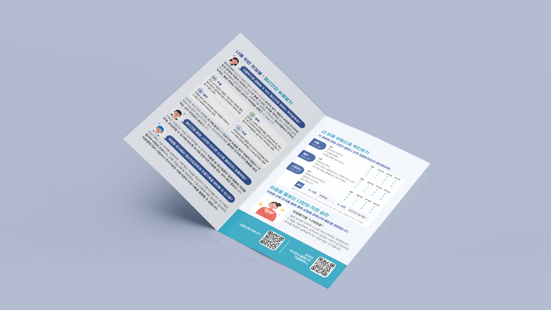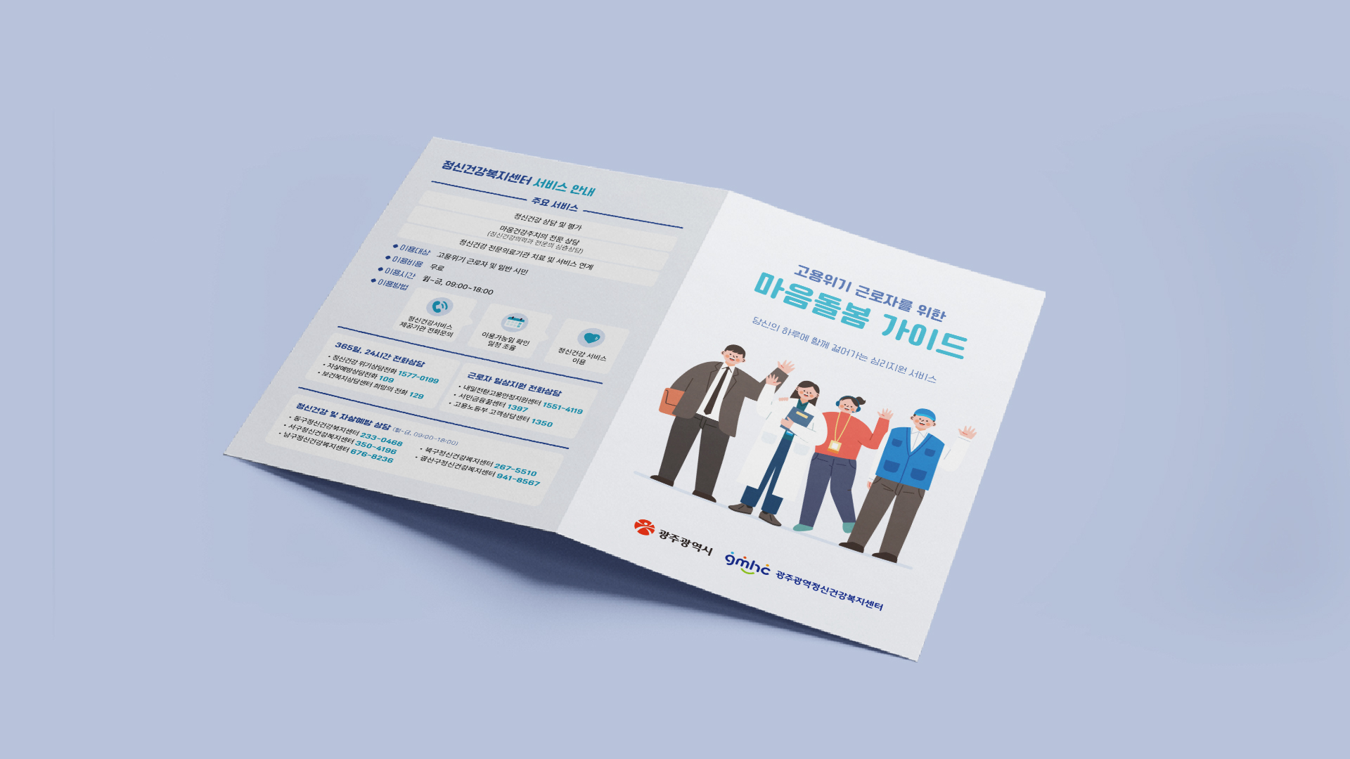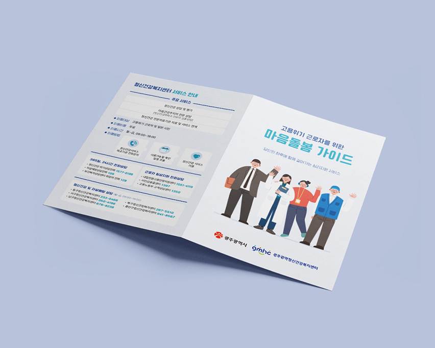 고용위기 근로자를 위한 마음돌봄 서비스를 주제로한 리플렛 디자인입니다.