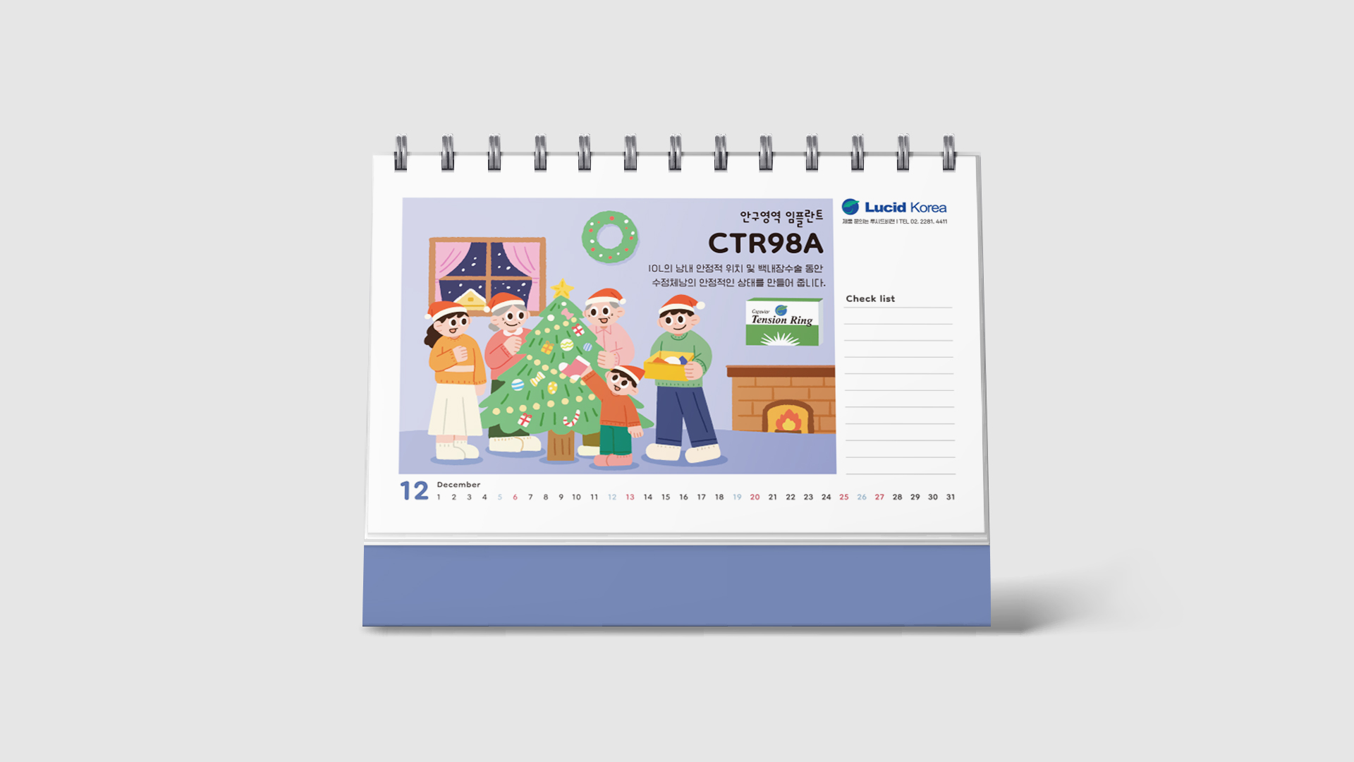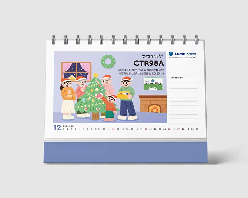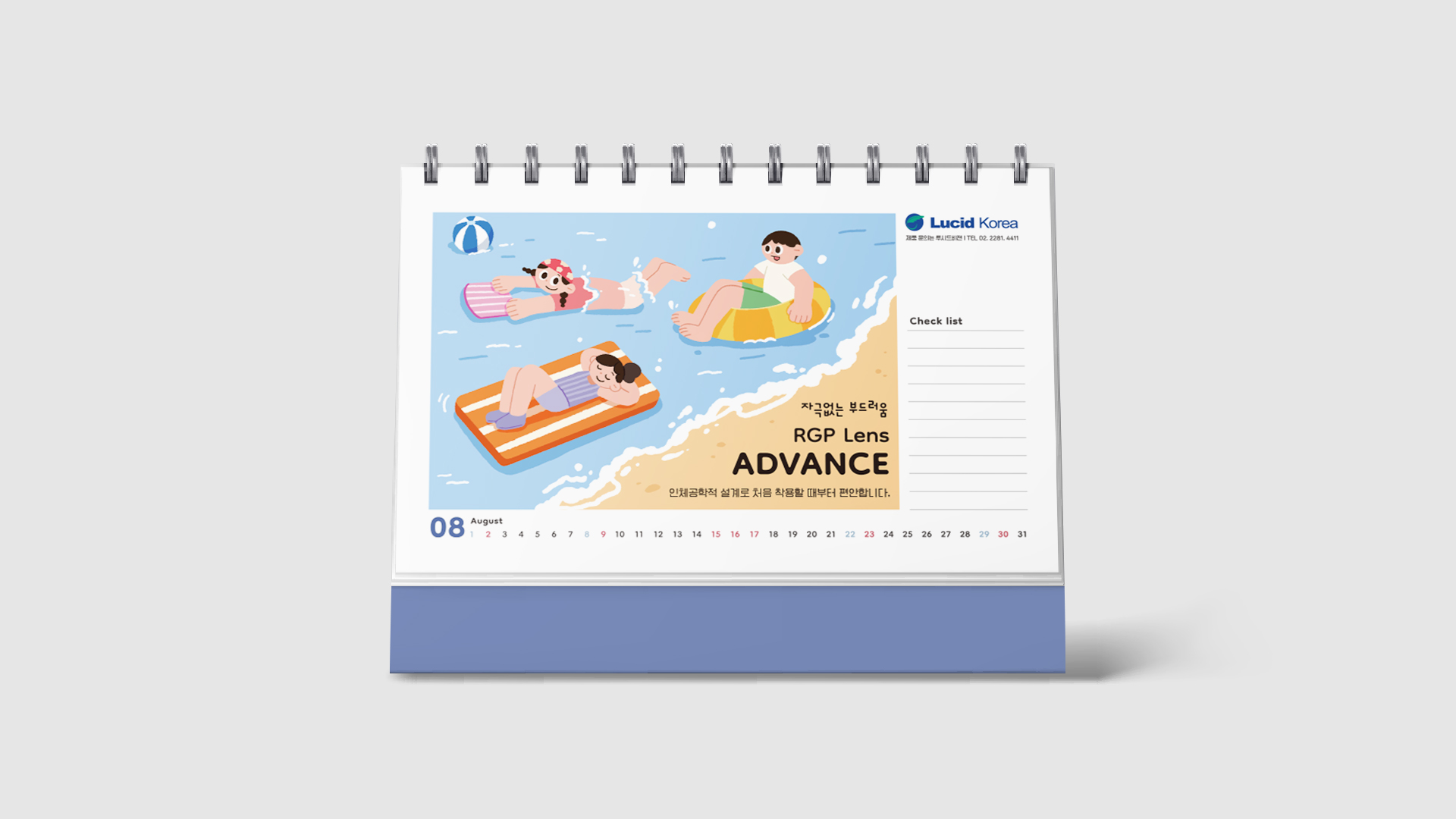 루시드코리아 브랜드 이미지를 친근하고 따뜻한 일러스트로 제작한 2026달력 디자인입니다.