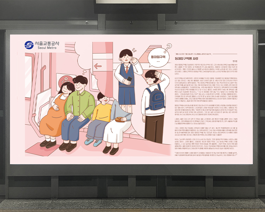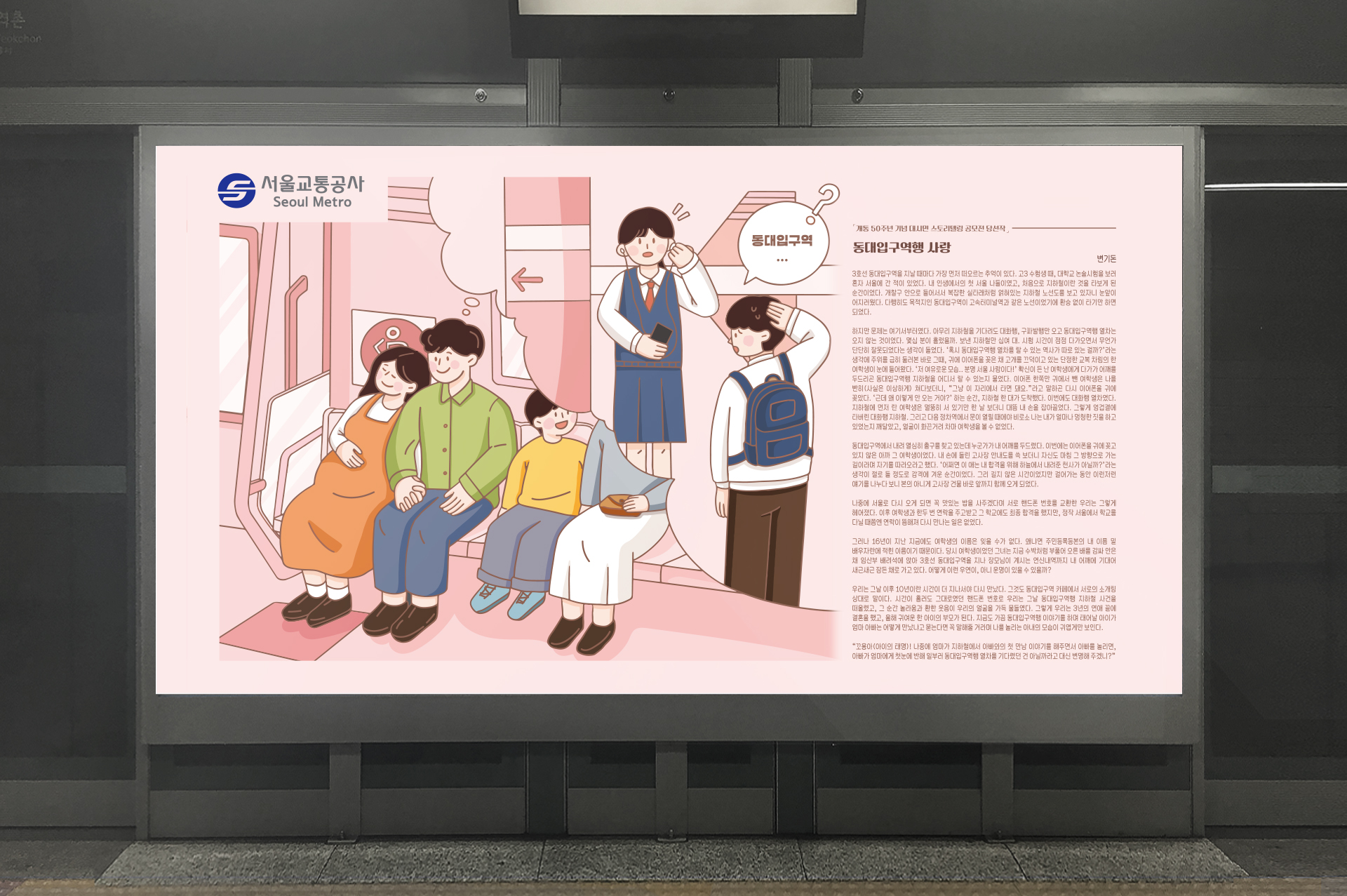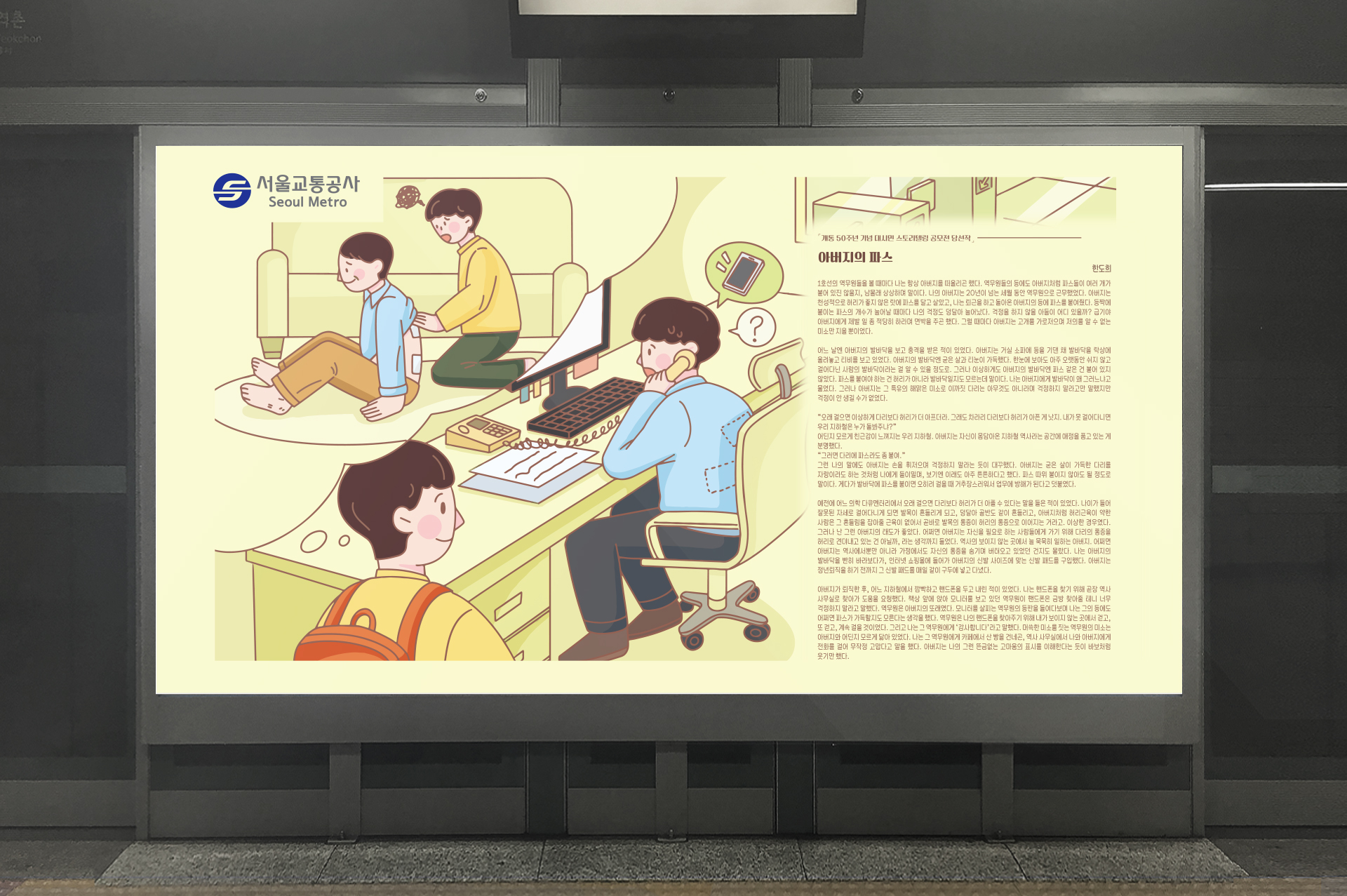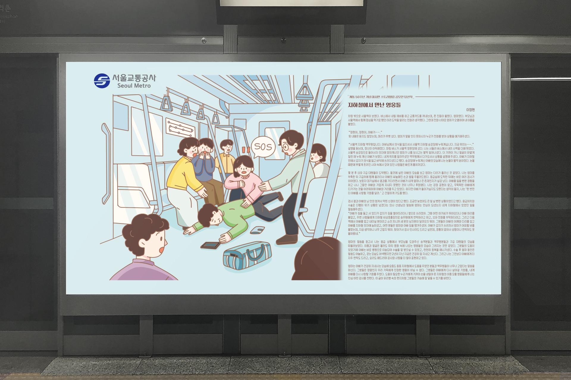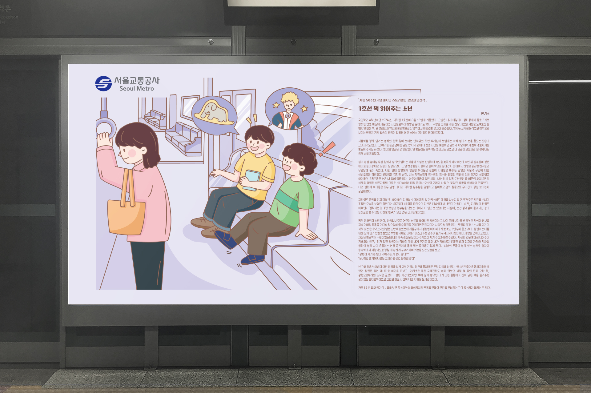 서울 지하철 개통 50주년 기념 스토리텔링 공모전 수상작을 바탕으로 제작한 조명광고 디자인입니다.