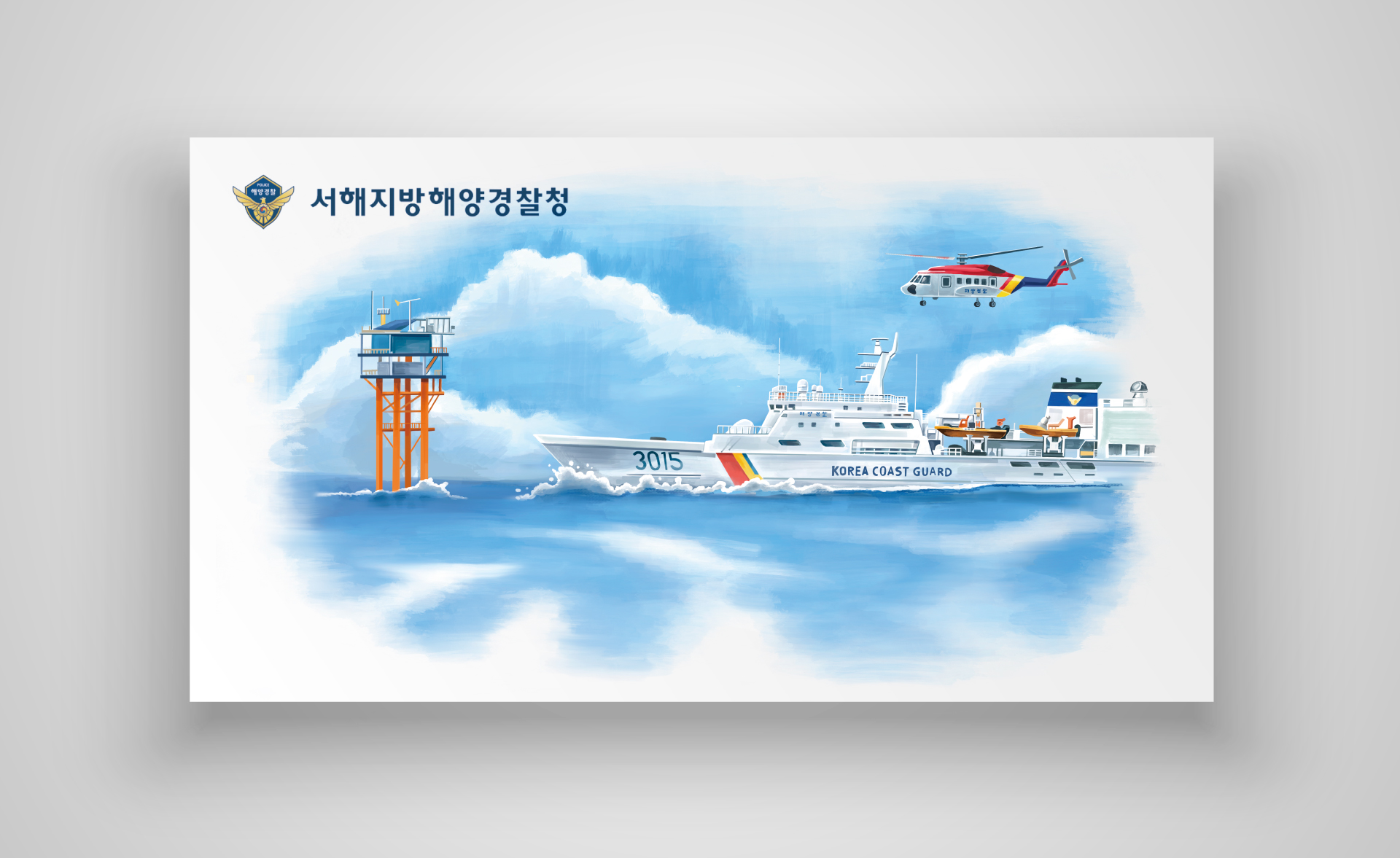 서해지방해양경찰청에서 사용되는 포토존 일러스트 디자인입니다.
