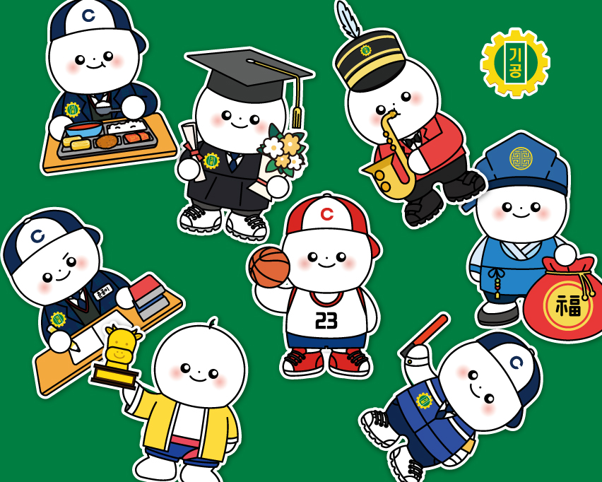 춘천기계고등학교 춘천기계공업고등학교의 과별 특징을 담아낸 친근한 마스코트 캐릭터입니다. 대표 의상과 소품을 활용하여 각 전공의 정체성을 표현했으며, 전체적으로 밝고 긍정적인 에너지가 느껴지도록 제작했습니다. Date: May 24, 2024 Services: CHARACTER