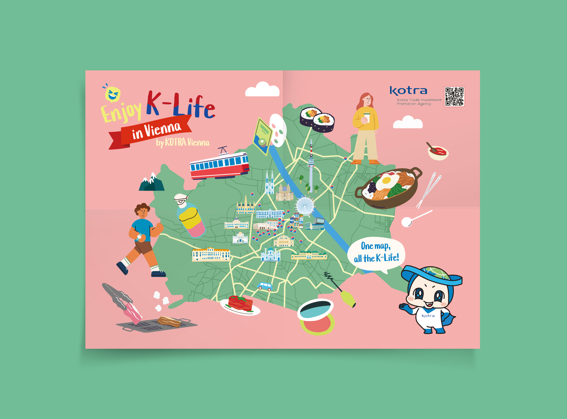코트라 비엔나 무역관의 ‘Enjoy K-Life’ 지도 포스터 디자인입니다.